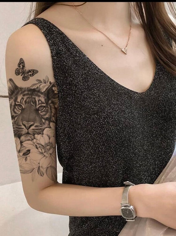 Temporary Floral Tiger Tattoo With Butterfly Tattoos For Etsy Uk